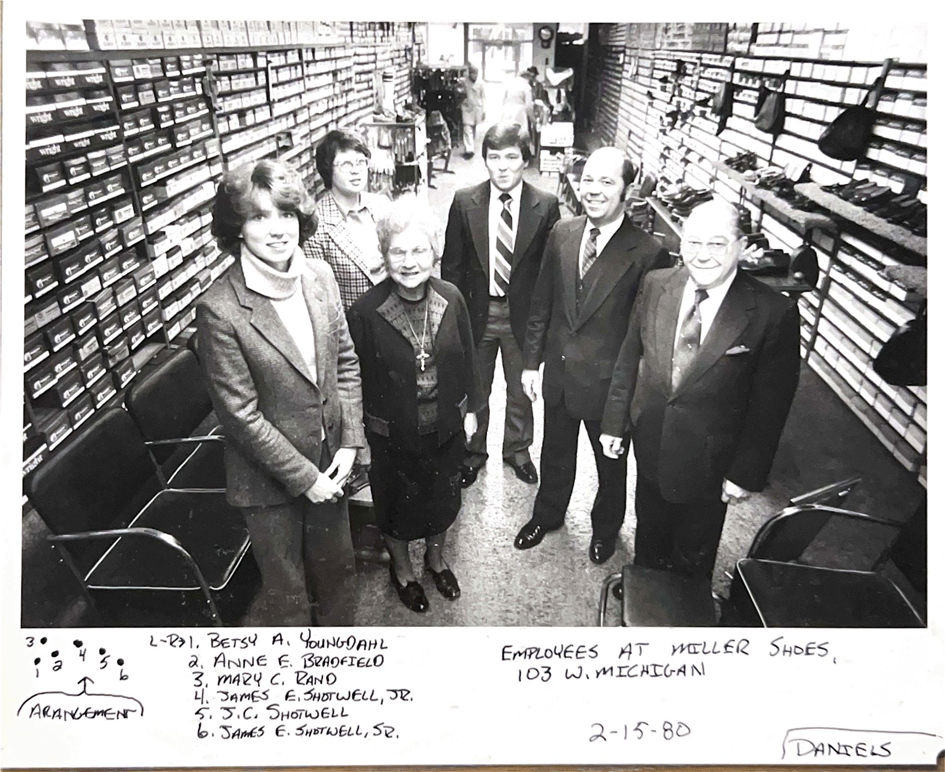 That makes a fourth generation own or work at the shoe store, which was opened in 1913 by Charles A. Miller on the second story at 148 W. Michigan Ave., above Week's Drug Store. It was eventually sold to J.C. “Shotty" Shotwell in 1959, the same year Jim Shotwell began working for his dad at age 22.