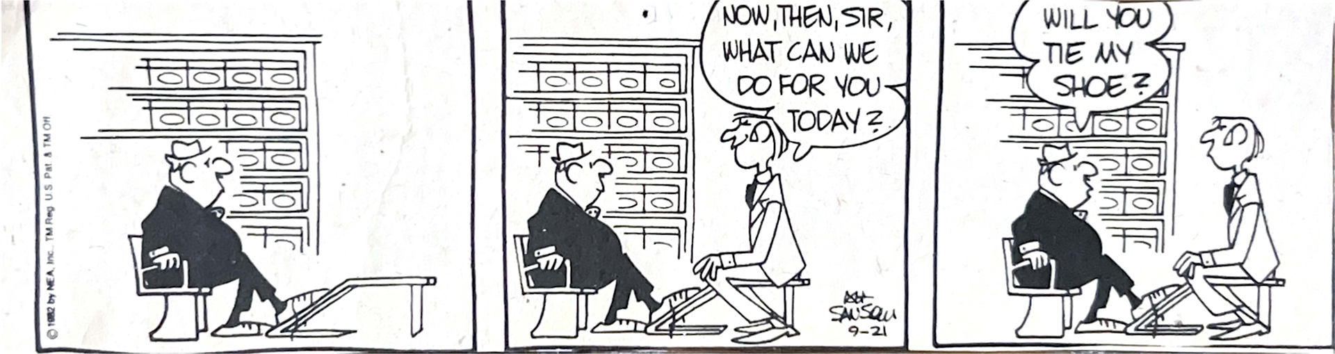 By the mid-1980s, it started to get difficult to find shoes made in America. In the past decade "it is almost impossible," the men said. Jim Shotwell credits Steve with adding more of what used to be called "tennis shoes" to the store's once predominant inventory of leather shoes for adults and children. At first, these shoes were mainly black high or low top shoes for boys. It used to be that leather shoes fit a bit tight because the leather needed to be broken in, they said. "Today," said Steve Shotwell, "people want their leather shoes to fit like slippers and not have to break them in at all."